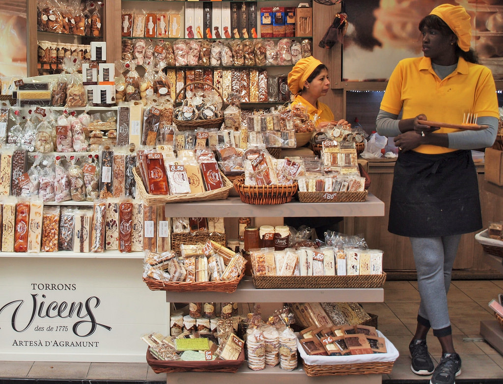 Besides Christmas decorations, you can find traditional Spanish and Catalan sweets. The most important one is turron. It is traditionally made of egg white, honey, sugar and almonds. Some of them add chocolate. It’s the real symbol of Spanish Christmas lunch time.